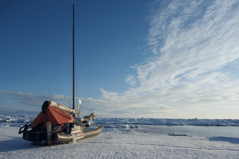 En 2018, nous avons expérimenté un de ces gros coups de vent, qui fracture les plaques de glace et qui nous exposent face aux vagues…